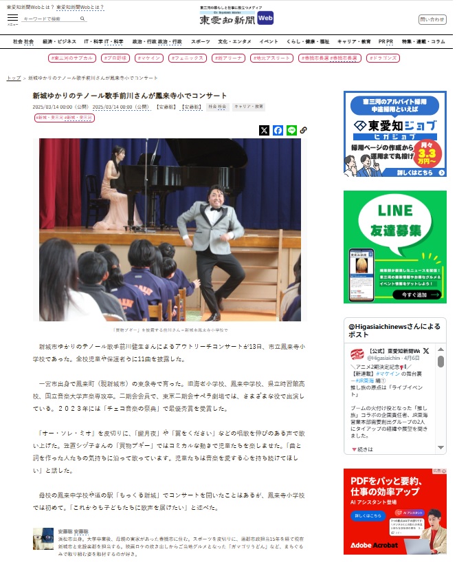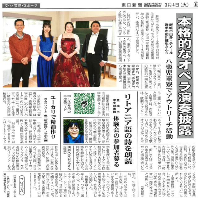 テノール歌手前川健生の出身地である、愛知県東三河での青少年に向けた音楽活動事業